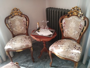 tavolino, 2 poltroncine, scrivania, piccolo bagno privato, asciuga capelli,
